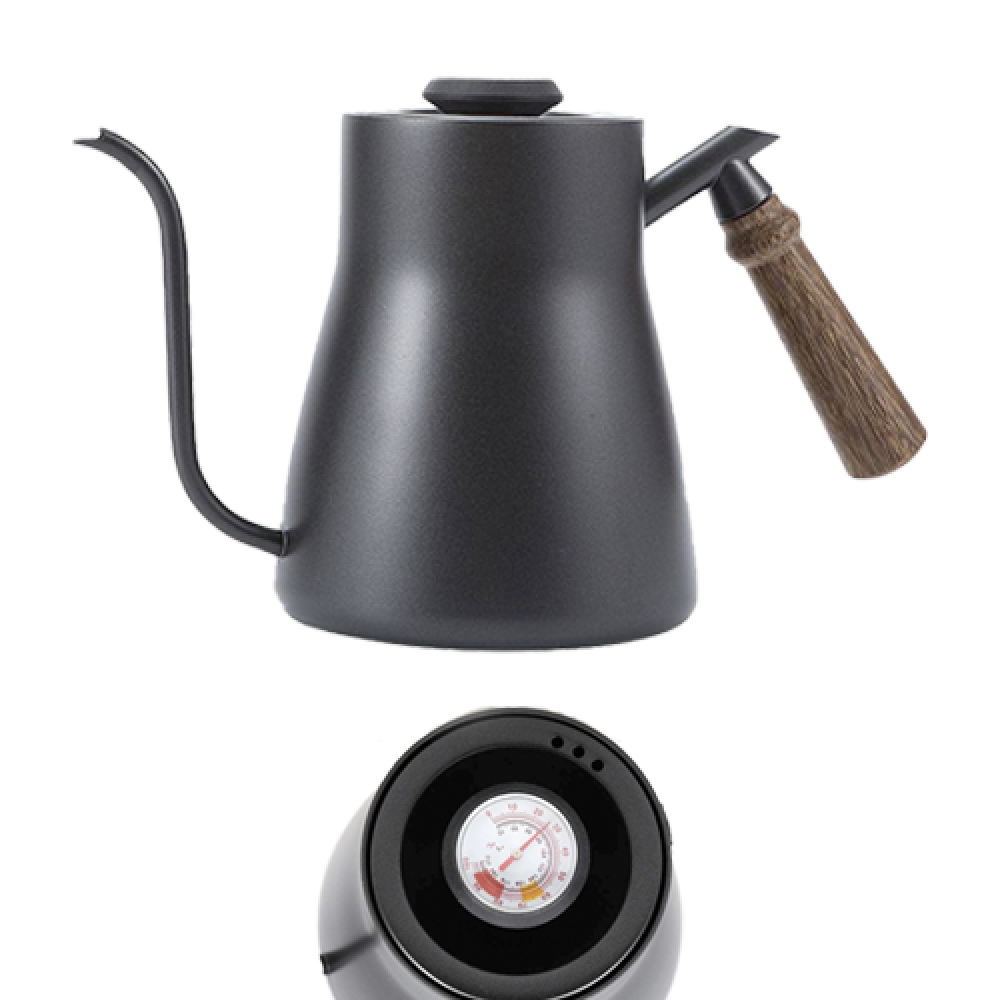 ارتقِ بتجربة تحضير قهوتك مع إبريق التقطير الاحترافي الذي يجمع بين الأناقة والعملية. تصميم انسيابي باللون الأسود الفاخر مع مقبض خشبي مقاوم للحرارة، وميزان حرارة مدمج لضبط أدق درجات التخمير، ليمنحك كوب قهوة متكامل المذاق كل مرة.