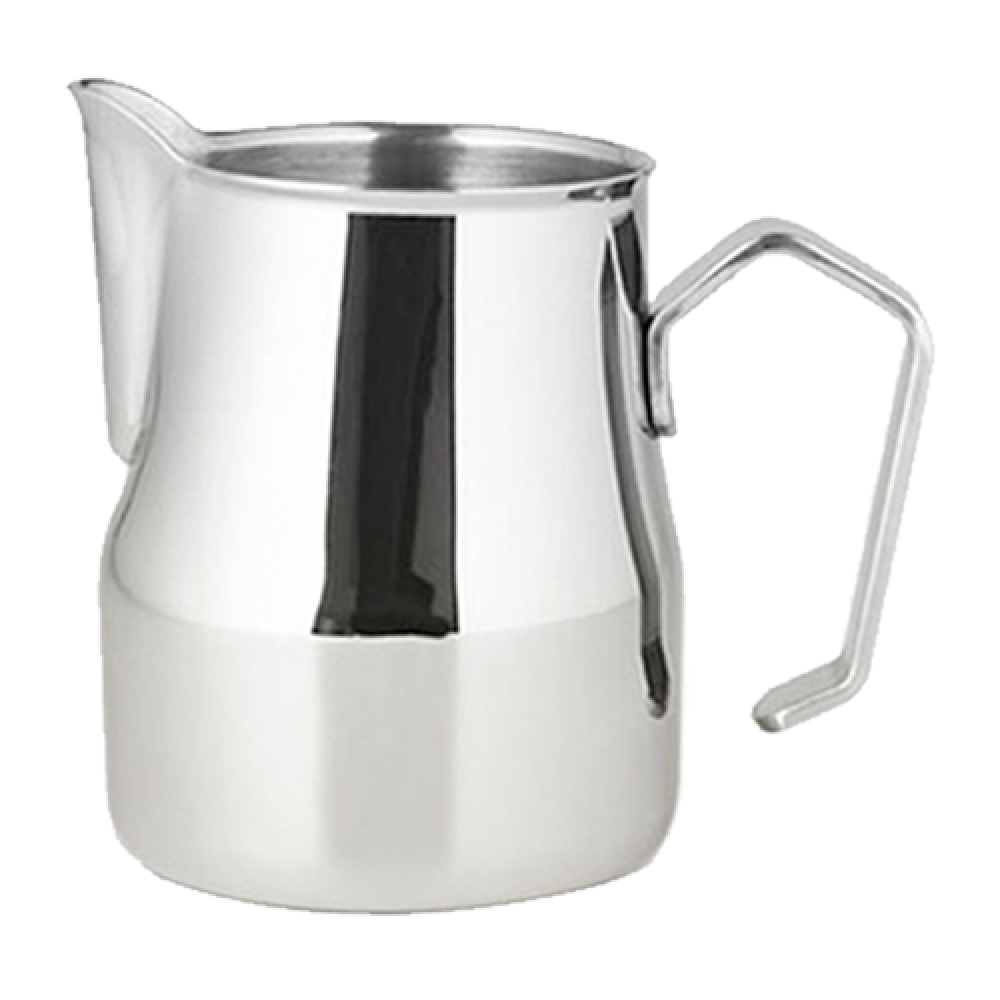 أطلق العنان لإبداعك في فن اللاتيه مع إبريق بخار الحليب الفضي اللامع بسعة 350 مل، المصمم بعناية لتمنحك تحكمًا مثاليًا في تدفق الحليب ورسم أدق التصاميم. مزيج من الفخامة والأداء الاحترافي في أداة واحدة.